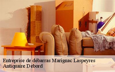La société de débarras Antiquaire Debord est reconnue pour travailler avec dévouement, ardeur et professionnalisme. Intervenant à Marignac Laspeyres, son équipe dispose de la compétence et de l’expertise pour vous offrir les meilleures prestations. La société de débarras est en mesure de vous fournir les meilleures solutions adaptées à votre projet de débarrassage. Avant toute intervention, la société vous fait parvenir un devis gratuit, établi suivant le volume de vos biens ainsi que des valeurs récupérables. La transparence est le maître-mot de la société de débarras. Faites-lui confiance !